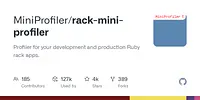 rack-mini-profiler Features Learn more rack-mini-profiler needs your help Installation Rails Upgrading to version 2.0.0 Net::HTTP stack level too deep errors peek-mysql2 stack level too deep errors Rails and manual initialization Rack Builder Sinatra Hanami Patching ActiveRecord Patching Net rack-mini-profiler. Middleware that displays speed badge for every HTML page, along with (optional) flamegraphs and memory profiling. Designed to work both in production and in development.